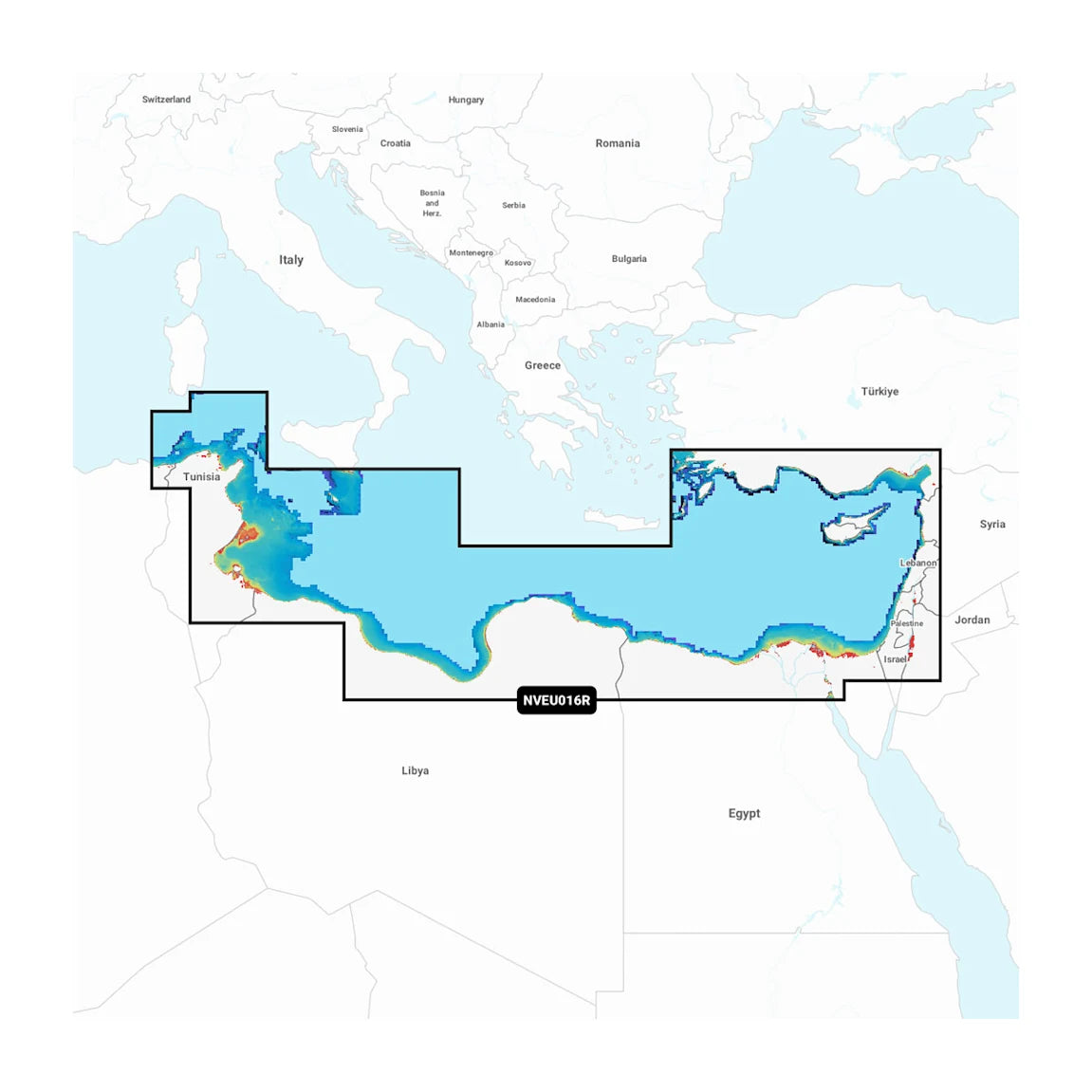 Coastal coverage of the eastern Mediterranean coast from Tunis, Tunisia to Antalya, Türkiye including the Levant, the Suez Canal, Cyprus and Malta. Ports include Tripoli, Libya; Alexandria and Port Said, Egypt and Beirut, Lebanon.