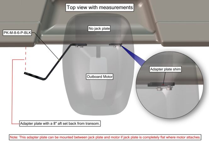 This adapter plate kit mounts between the motor and transom and allows for a custom configuration and easy installation of Power-Pole Shallow Water Anchors depending on the shape of the boat’s transom. The adapter plate is designed for port mounting and positions the anchor with an 8-inch setback and 6-inch rise. All adapter plates are made from aircraft-grade aluminum and feature four layers of JL Marine powder coating, including the gloss black top coat, to resist corrosion and increase durability.